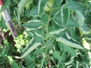 избыток цинка - старые листья томатов сильно загибаются вниз. Начинает появлятся фиолетовый оттенок на нижней стороне листа.